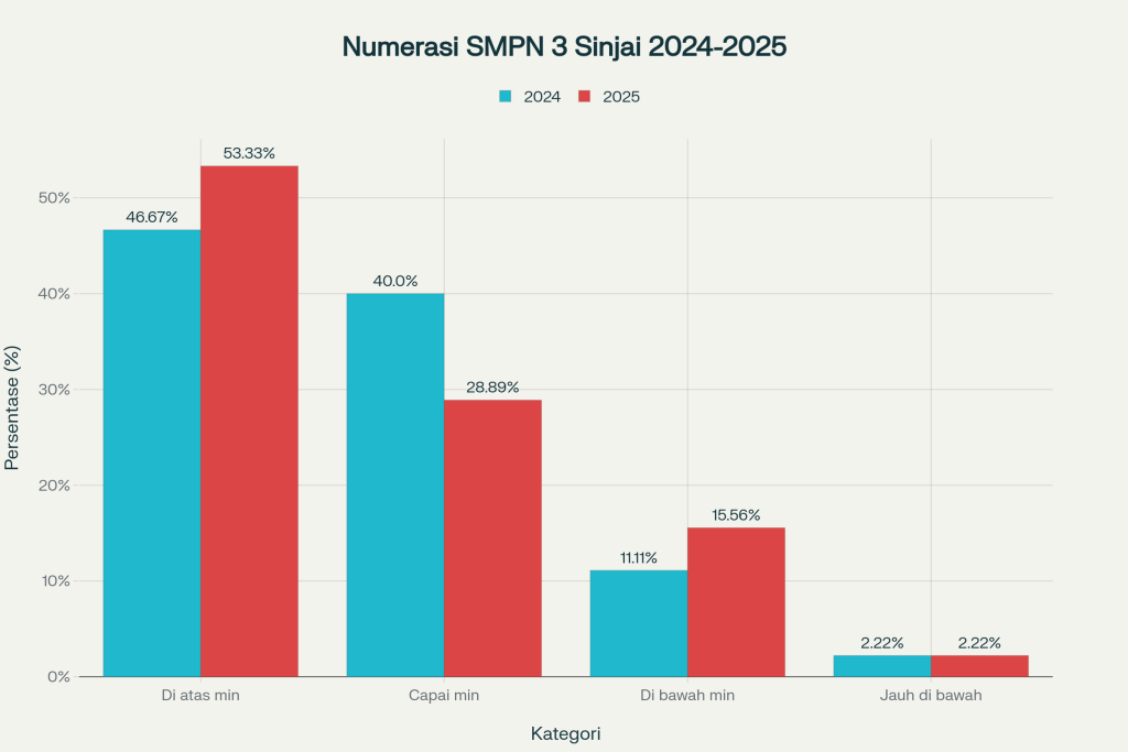 - 2025: 82,22% siswa memenuhi atau melampaui standar minimum