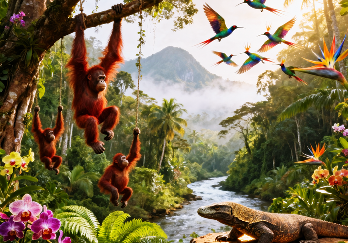 Wilayah Indonesia yang luas dengan variasi curah hujan, temperatur, dan tanah memengaruhi keragaman flora dan fauna. Indonesia memiliki ragam flora dan fauna yang tinggi. Keragaman flora dan fauna di Indonesia jauh lebih tinggi dibanding Amerika Selatan dan Afrika yang beriklim tropis. Jenis flora di Indonesia berjumlah lebih dari 10% jenis tumbuhan di seluruh dunia (Aryani, 2017). Indonesia memiliki hutan hujan tropis dengan beragam tumbuhan, seperti pohon, perdu, rumput, dan tumbuhan anggrek (orchidaceae) yang penyebarannya tersebar (Indonesia.go.id, 2018).